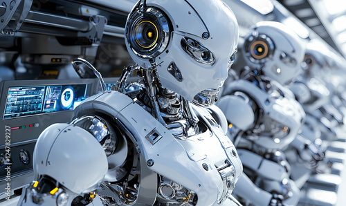 Fototapeta premium Robotic Assembly Line with a Control Dashboard, Representing Innovation in...