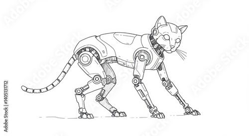 © Burak, Fototapeta premium Robotic Cat with Hydraulic Legs Cleaning Itself