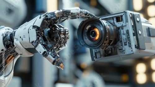 © BloomArt, Fototapeta premium Robotic hand delicately adjusting a camera lens.