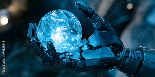 Fototapeta premium Robotic Hand Holding Crystal Sphere