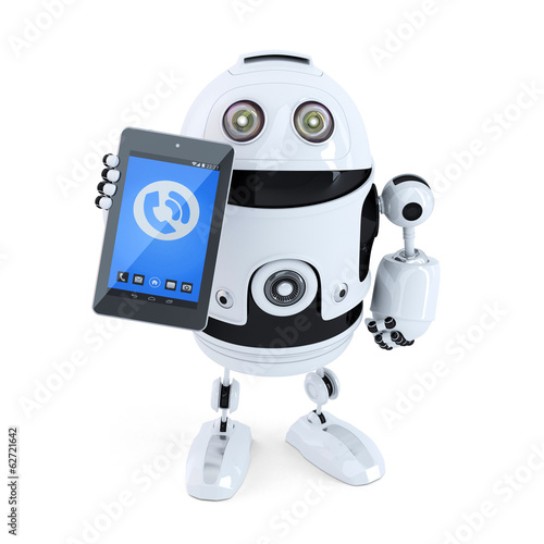 © kirill_makarov, Fototapeta premium Robotic holding ringing mobile phone or tablet