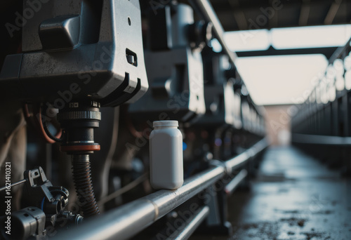 Fototapeta premium Robotic milking equipment in a modern dairy milking parlor