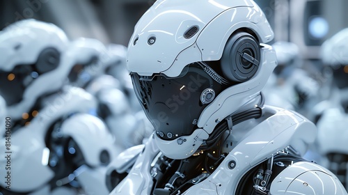 © Dadee, Fototapeta premium Robotic professionals in an advanced tone office, showcasing innovative approaches to digital tasks