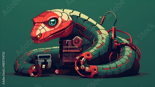 © SHADOW NB, Obraz premium Robotic Snake illustration Flat vector, Generative AI