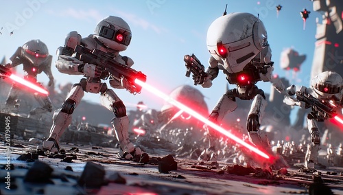 Fototapeta premium Robotic Soldiers Battle on Desolate Planet