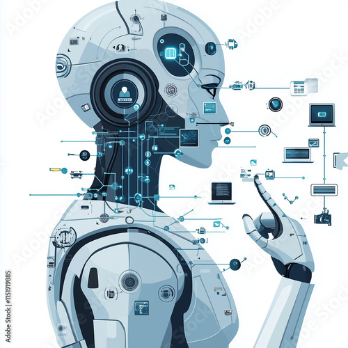 © คมกฤช สาบุดดา, Obraz premium Robotics and artificial intelligence (AI) technology are using computers.