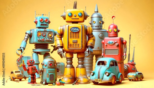 Fototapeta premium Robots Adorables y Aventuras en el Mundo de Fantasía, Fotografía...