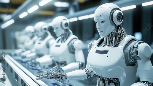 Fototapeta premium Robots handling repetitive tasks in a smart factory environment.