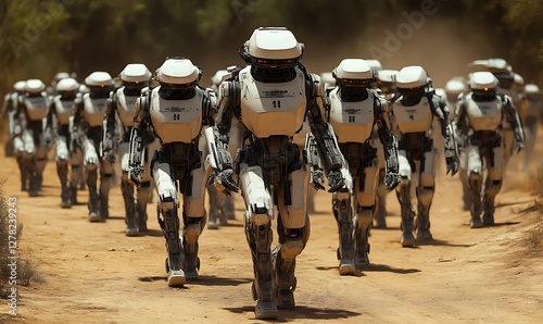 © Batu, Obraz premium Robots march desert, future warfare