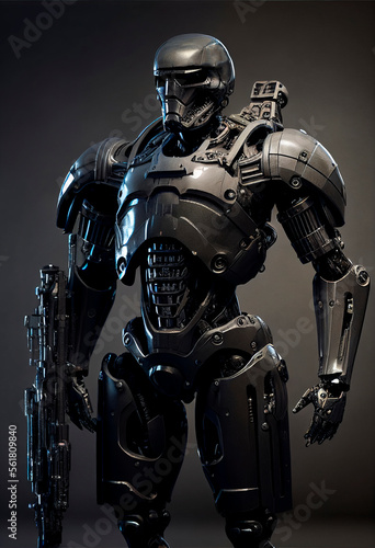 © Sirius1717, Fototapeta premium Robots. Soldier Robot hyper realistic. Conceptual project 2025. Futuristic interpretation. Illustration for advertising, cartoons, games, blockbusters, print media. My collection.