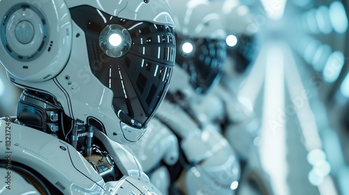 © Phanuwhat, Fototapeta premium 2905 32 Robots tackling math problems in a holographic contest, close-up view