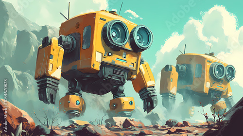 © Thiago, Fototapeta premium Robots terraforming machines. Terraforming Machine. Illustration