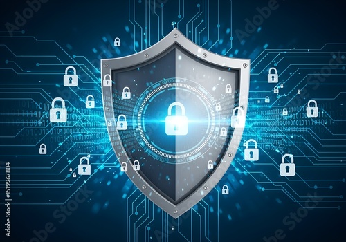 Obraz premium robust cybersecurity shield: digital protection concept.