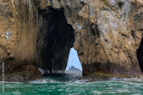 Fototapeta premium Roca enmarcada en túnel de otra roca en el mar - Kiccker rock (león dormido)...