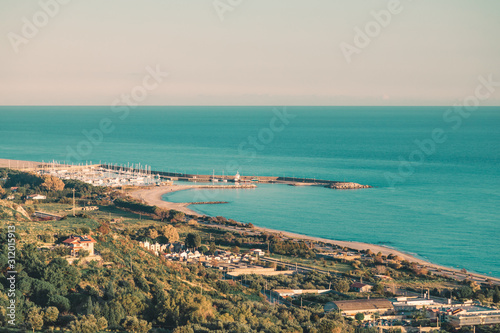 Obraz premium Roccella Jonica, vista aerea della città calabrese con il mare, la spiaggia e...