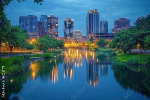 © app, Fototapeta premium Rochester Minnesota Cityscape at Twilight with River Reflection