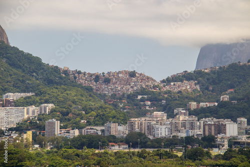 Obraz premium rocinha slum view of the rodrigo de freitas lagoon in Rio de Janeiro.