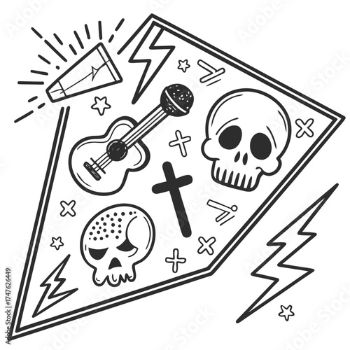 Obraz premium Rock and Roll Doodle Elements on a Shield Shape music