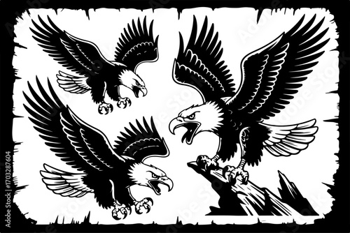 Obraz premium Rock and Roll Guns with Wings and Crown – Bold Black and White Graphic