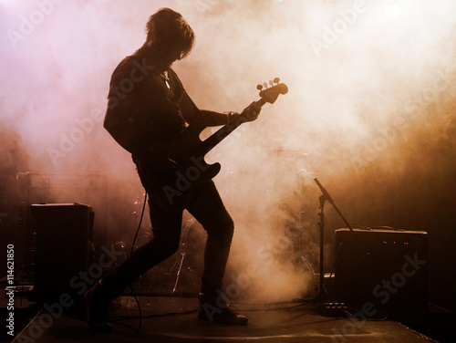 © Voloshyn Roman, Naklejka premium Rock band performs on stage. Guitarist.