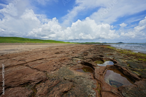 © SooHyun, Fototapeta premium rock beach and charming clouds