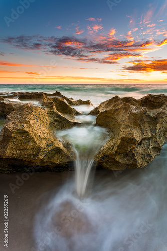 Obraz premium Rock Cascade During Sunset at Burns Beach Perth Australia