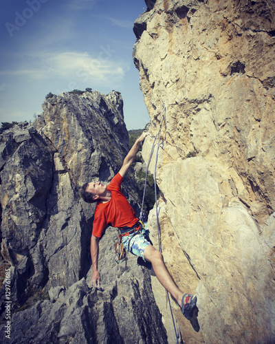 © Vitalii Nesterchuk, Obraz premium Rock climber.