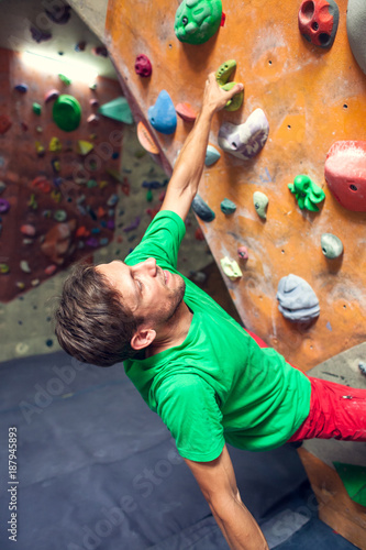 © zhukovvvlad, Obraz premium Rock climbing in the gym.
