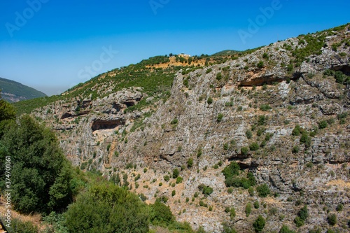 Naklejka premium rock formation with caves in the Lebanon mountains