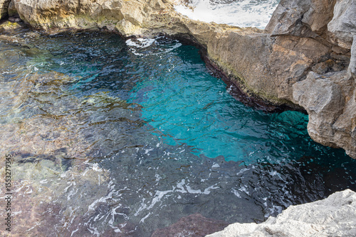 © Анжелика Мельничук, Obraz premium Rock formations and turquoise waters of the coast of Menorca, Spain