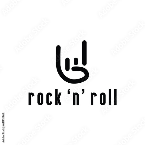 © Roossoo, Fototapeta premium rock n roll sign of the horns hand gesture outline logo design vector