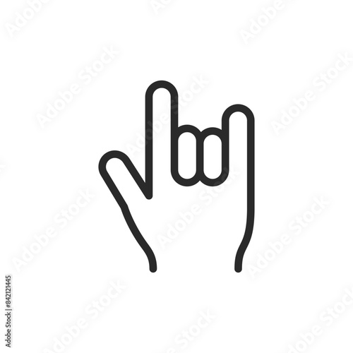 Obraz premium Rock on gesture, linear style icon. Horns gesture. Editable stroke width