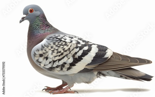 Naklejka premium Rock Pigeon in profile, showcasing its grey and white feathers and...