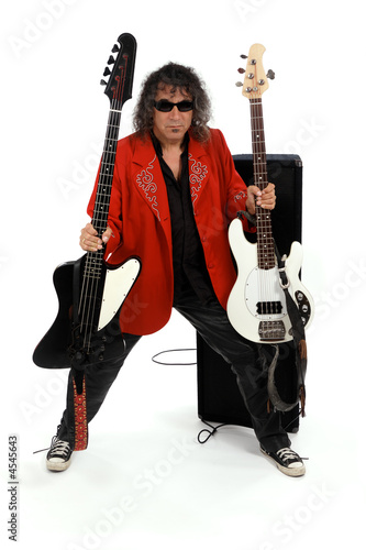 © philippe Devanne, Fototapeta premium rocker debout avec deux guitares