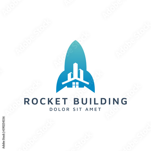 © daksarupa, Fototapeta premium rocket and building negative space logo design