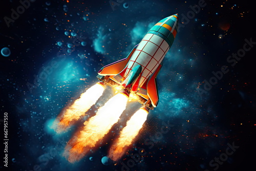 © waranyu, Obraz premium Rocket flying up into out space, galaxy background