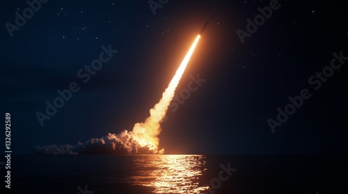 © THESUN, Obraz premium rocket launch at night over the ocean.