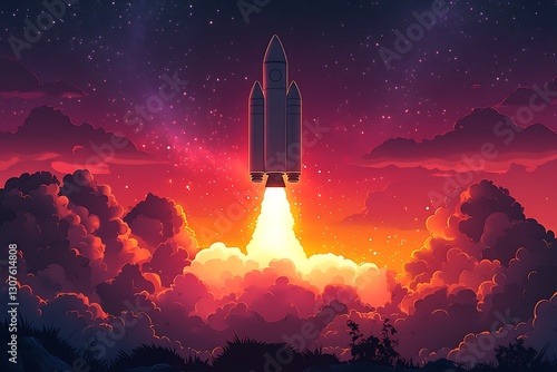 Fototapeta premium Rocket Launch at Sunset Dramatic Space Exploration Illustration