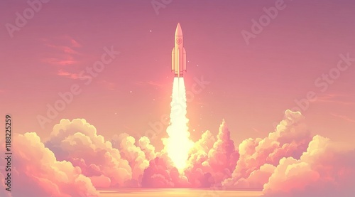 © Atmospheric stock, Fototapeta premium Rocket launch at sunset with billowing clouds and a vibrant sky