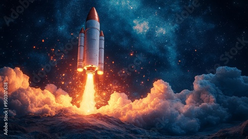 © Thitiyakorn, Fototapeta premium Rocket launch. Business startup.
