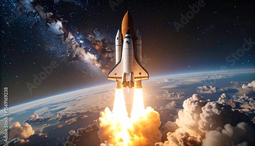Fototapeta premium Rocket launch event outer space digital art cosmic environment aerial view space exploration concept