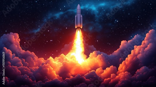 Fototapeta premium Rocket launch event space digital art cosmic environment inspirational viewpoint innovation theme