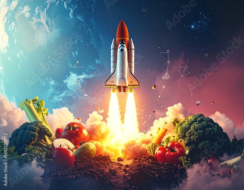 © muhamad, Obraz premium Rocket launch from fresh produce