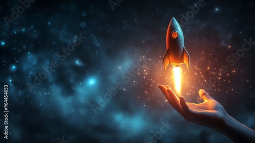 © Kind Bee Studio, Obraz premium Rocket Launch From Hand.