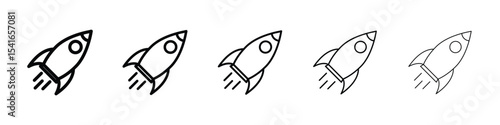 Fototapeta premium Rocket launch icon logo in stroke lines collection