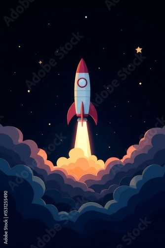 Obraz premium Rocket Launch Illustration Space Exploration Graphic Design
