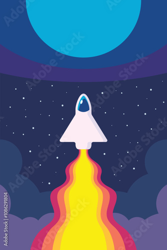 © siraanamwong, Obraz premium Rocket launch in the sky flying over clouds