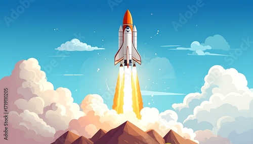 © Damar, Fototapeta premium Rocket launch into a vibrant sky