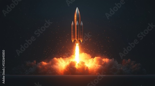 Obraz premium Rocket Launch into Dark Space