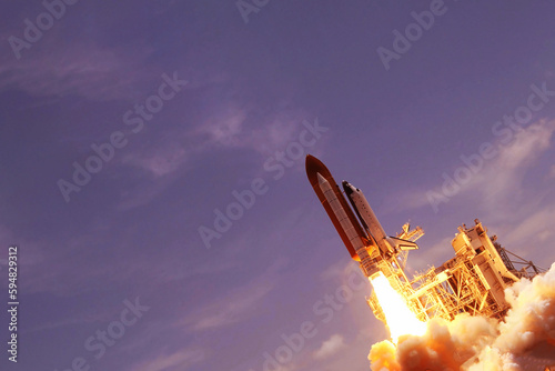 Obraz premium Rocket launch into outer space. Elements of this image furnished NASA.